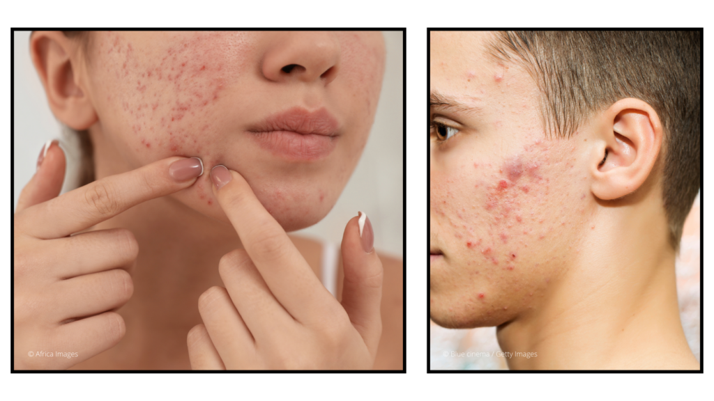 Et si l’acné n’est pas dangereuse pour la santé, elle peut engendrer des séquelles physiques (cicatrices d’acné) et psychosociales importantes, qui peuvent affecter un adolescent jusqu’à l’âge adulte.