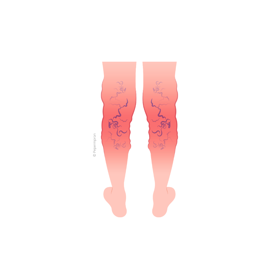 Ce sont des veines dilatées et tortueuses dues à l’altération des valves, (clapets permettant l’orientation du flux sanguin dans les veines). Les varices s’observent principalement au niveau des jambes.